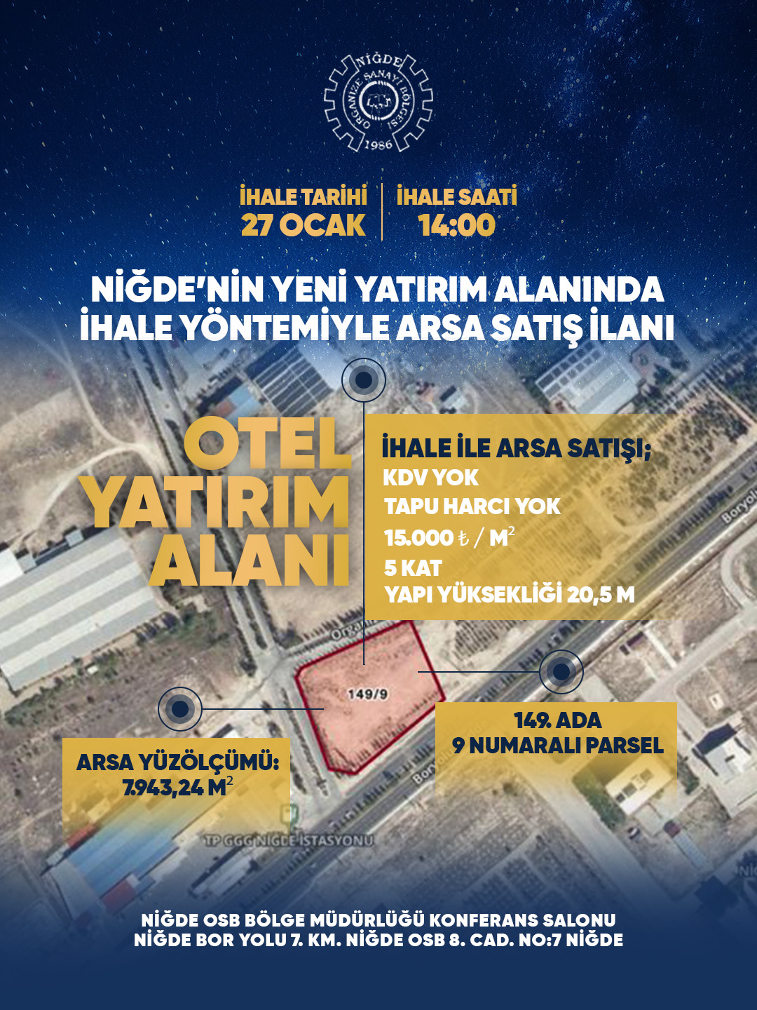 05.01.2026- 25.01.2026ARASINDA NİĞDE OSB'DE ARSA TAHSİSİ YAPILACAK PARSELLERE İLİŞKİN DUYURU Organize Sanayi Bölgeleri ..